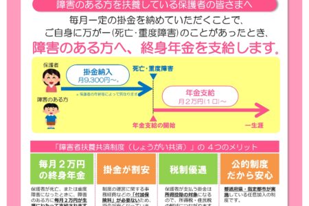 障害のあるお子さんの保護者の方に・・・ もし保護者が亡くなられたら、 もし保護者の方が、障碍者になってしまったら、 誰がこの子の面倒を見るのだろうか? ご不安であることと思います。 保護者に万が一のこと・・・いえ、いつか […]
